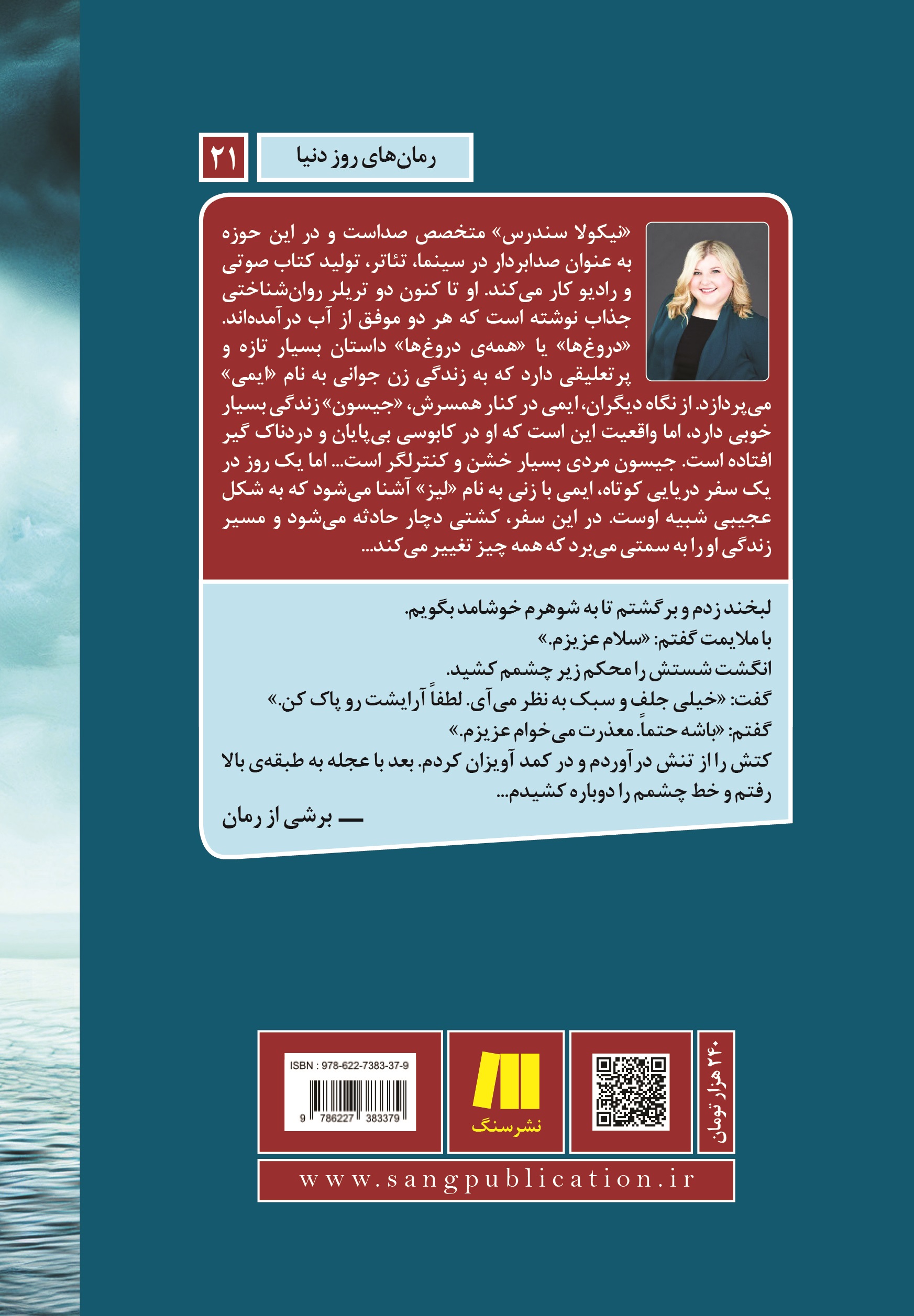 «نیکولا سندرس» متخصص صداست و در این حوزه به عنوان صدابردار در سینما، تئاتر، تولید کتاب صوتی و رادیو کار میکند. او تا کنون دو تریلر روانشناختی جذاب نوشته است که هر دو موفق از آب درآمدهاند. «دروغها» رمان سوم سندرس است.