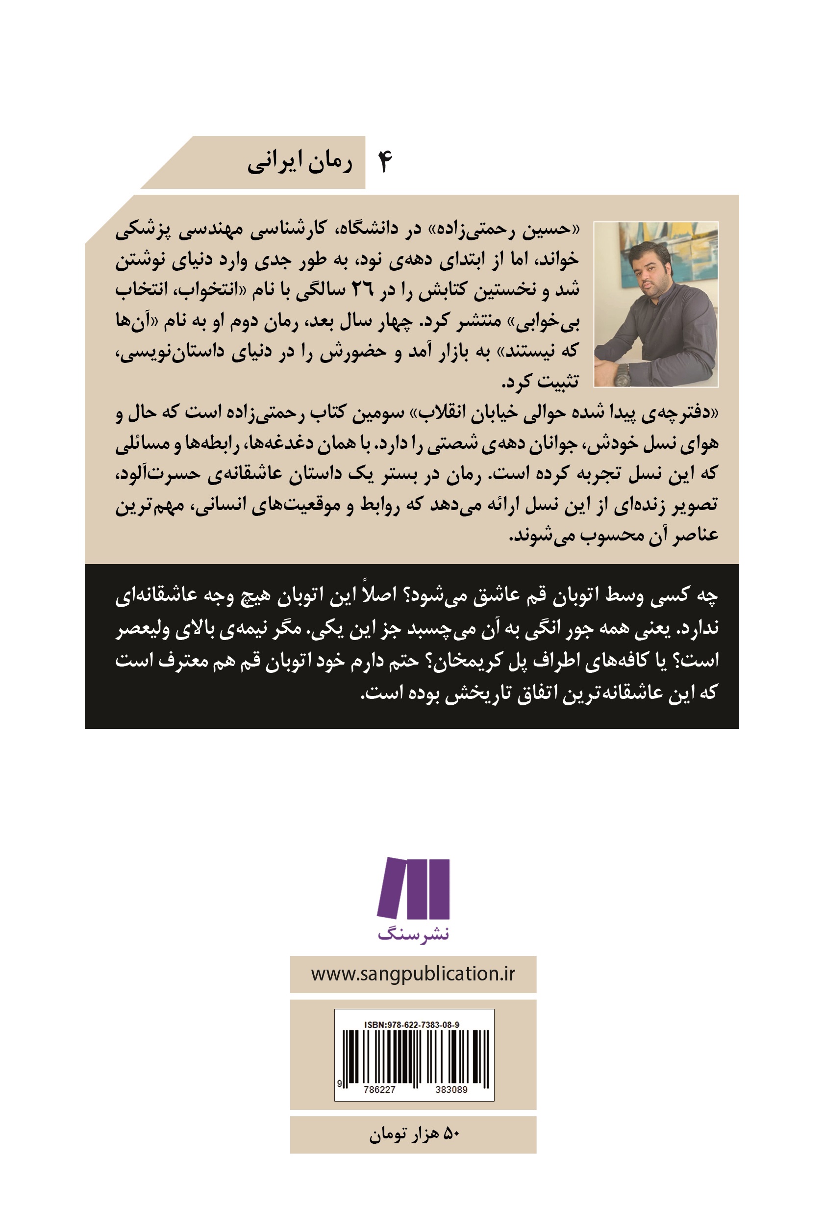 «دفترچهی پیدا شده حوالی خیابان انقلاب» سومین کتاب رحمتیزاده است که حال و هوای نسل خودش، جوانان دههی شصتی را دارد. با همان دغدغهها، رابطهها و مسائلی که این نسل تجربه کرده است. رمان در بستر یک داستان عاشقانهی حسرتآلود، تصویر زندهای از این نسل ارائه میدهد که روابط و موقعیتهای انسانی، مهمترین عناصر آن محسوب میشود.