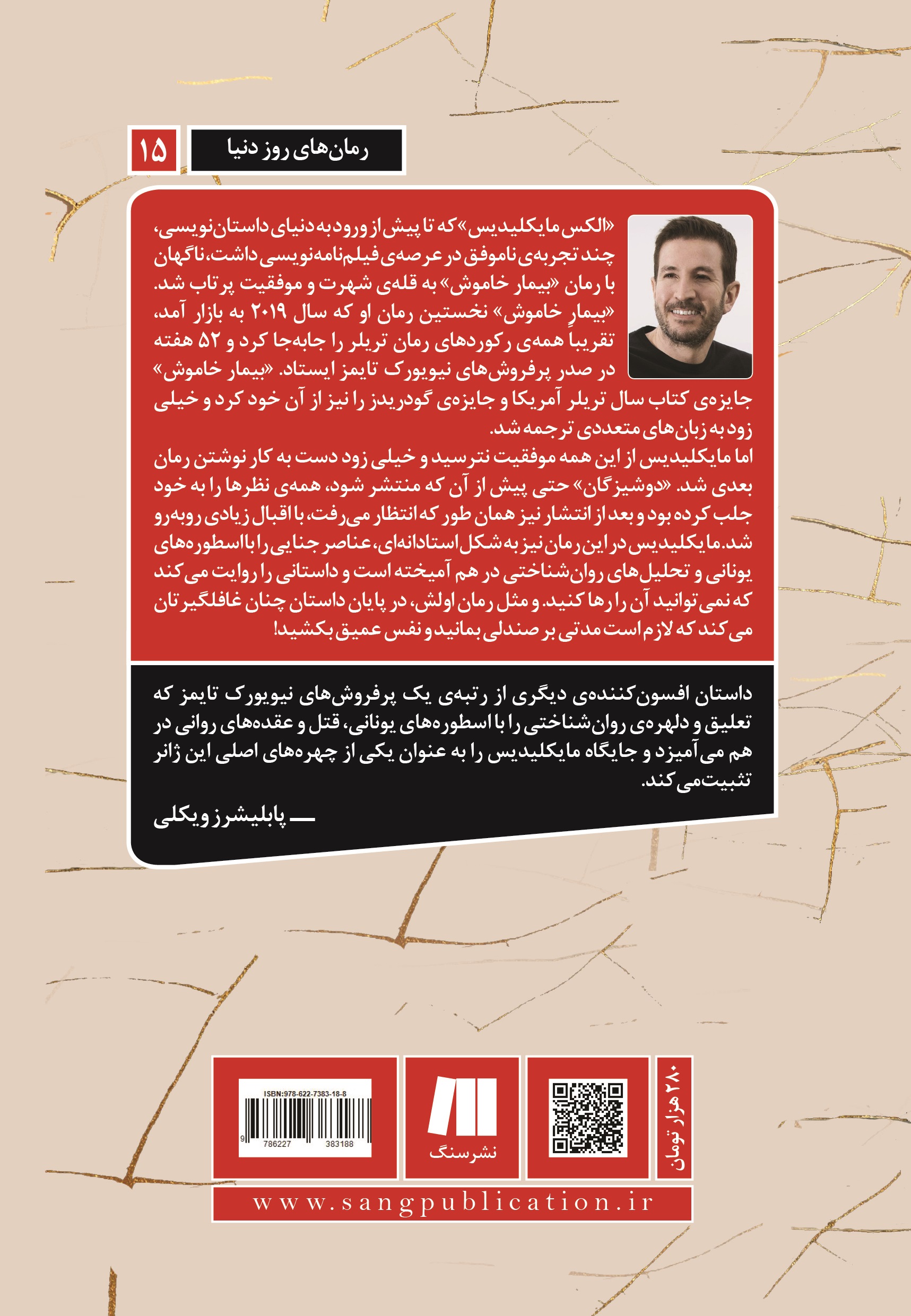 «الکس مایکلیدیس» که تا پیش از ورود به دنیای داستاننویسی، چند تجربهی ناموفق در عرصهی فیلمنامهنویسی داشت، ناگهان با رمان «بیمار خاموش» به قلهی شهرت و موفقیت پرتاب شد. «بیمار خاموش» نخستین رمان او که سال ۲۰۱۹ به بازار آمد، تقریباً همهی رکوردهای رمان تریلر را جابهجا کرد و ۵۲ هفته در صدر پرفروشهای نیویورک تایمز ایستاد. «بیمار خاموش» جایزهی کتاب سال تریلر آمریکا و جایزهی گودریدز را نیز از آن خود کرد و خیلی زود به زبانهای متعددی ترجمه شد.
