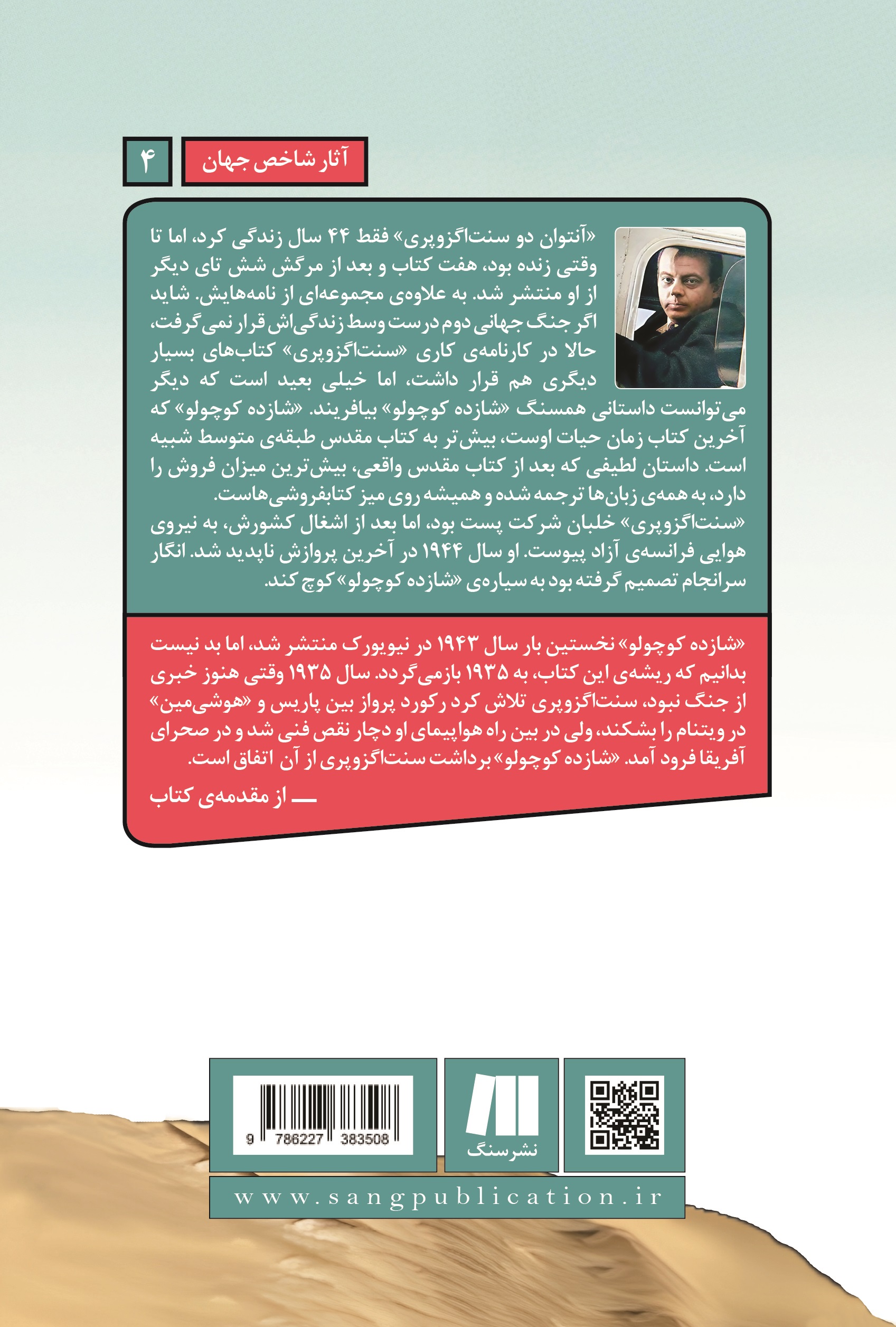«شازده کوچولو» که آخرین کتاب زمان حیات اوست، بیشتر به کتاب مقدس طبقهی متوسط شبیه است. داستان لطیفی که بعد از کتاب مقدس واقعی، بیشترین میزان فروش را دارد، به همهی زبانها ترجمه شده و همیشه روی میز کتابفروشیهاست.