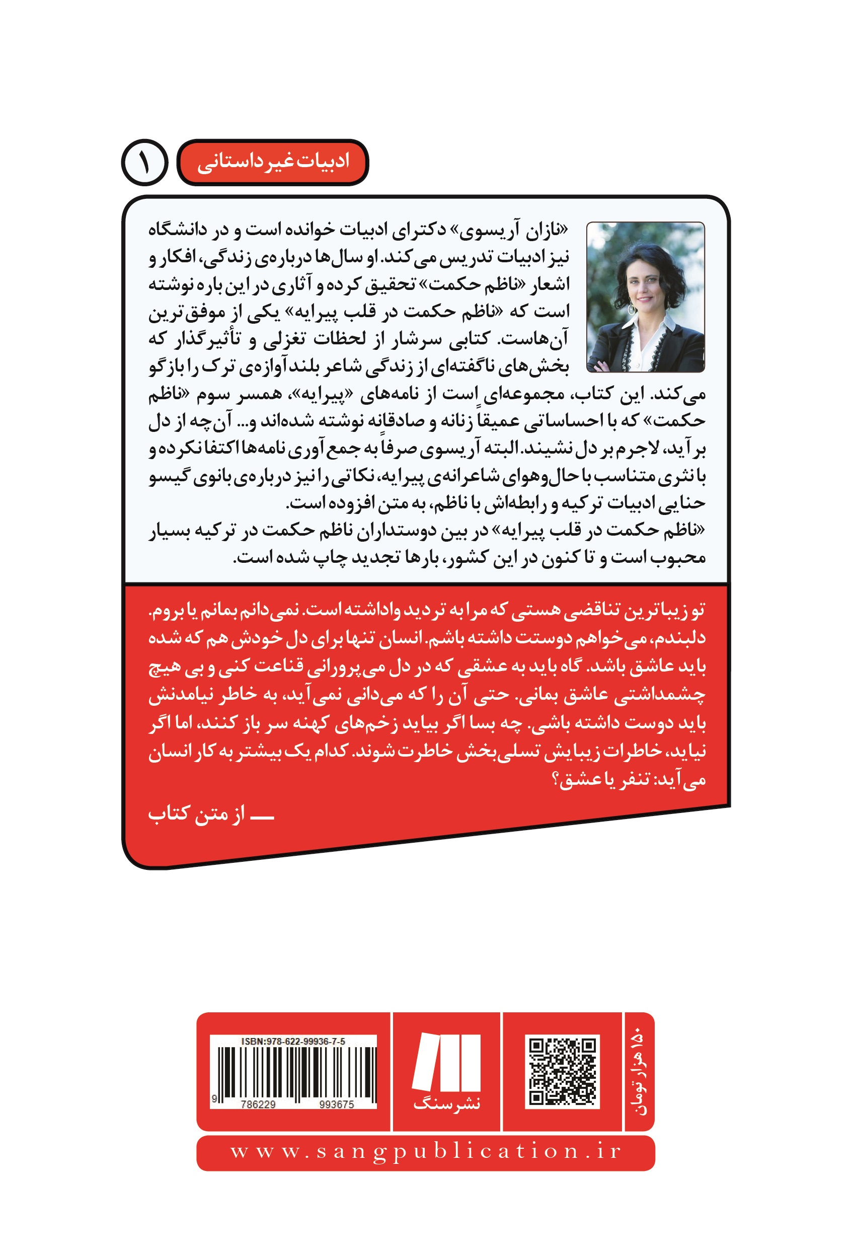 «ناظم حکمت در قلب پیرایه» مجموعه‌ای است از نامه‌های پیرایه، همسر سوم ناظم حکمت، شاعر بزرگ ترک که به همت «نازان آریسوی» در ترکیه منتشر شده و با استقبال بسیار زیاد مخاطبان روبه‌رو شده است. آریسوی علاوه بر این نامه‌ها، نکاتی را از زندگی ناظم و پیرایه به متن افزوده که واجد اطلاعات جدید و جالبی از رابطه‌ی این دو است. تا جایی که این کتاب را می‌توان تا حدودی در گروه آثار زندگی‌نامه‌ای یا آثاری که درباره‌ی شخصیت‌های مهم ادبیات نوشته می‌شوند نیز محسوب کرد. با این حال بخش اصلی و مهم‌تر کتاب، شاید نامه‌های پیرایه باشد. پیرایه که در ترکیه به بانوی گیسوحنایی مشهور است، نامه‌هایش را عمیقاً صادقانه و با احساساتی به‌شدت زنانه نوشته است و از این رو نوشته‌هایش سخت به دل می‌نشینند.