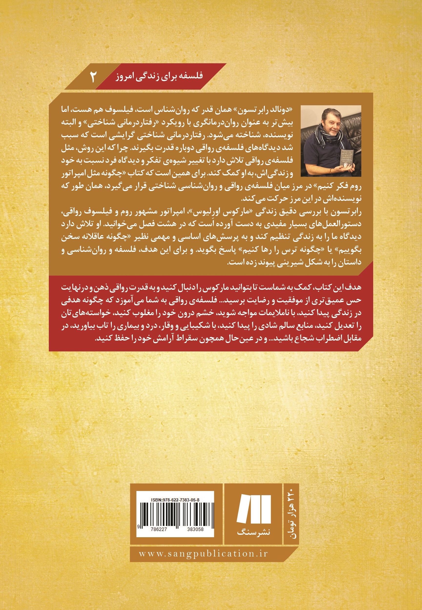 رابرتسون با بررسی دقیق زندگی «مارکوس اورِلیوس»، امپراتور مشهور روم و فیلسوف رواقی، دستورالعملهای بسیار مفیدی به دست آورده است که در هشت فصل میخوانید. او تلاش دارد دیدگاه ما را به زندگی تنظیم کند و به پرسشهای اساسی و مهمی نظیر «چگونه عاقلانه سخن بگوییم» یا «چگونه ترس را رها کنیم» پاسخ بگوید. و برای این هدف، فلسفه و روانشناسی و داستان را به شکل شیرینی پیوند زده است.